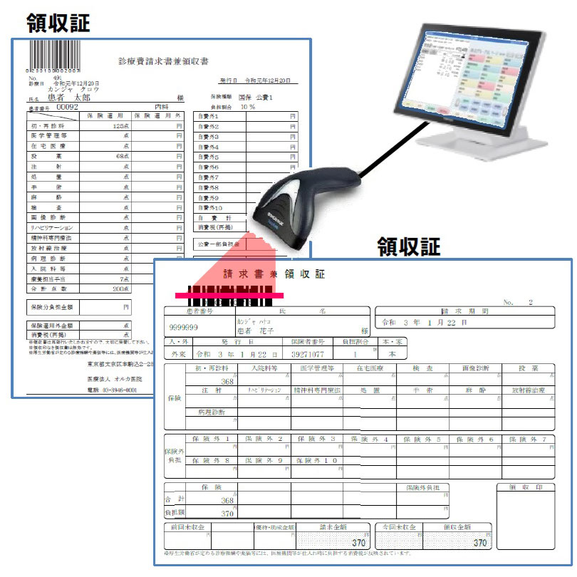 バーコード連携させることで、金額の入力ミスや打ち直しを防ぎます。患者様をお待たせすることなく、スムーズに正確な会計が可能に。